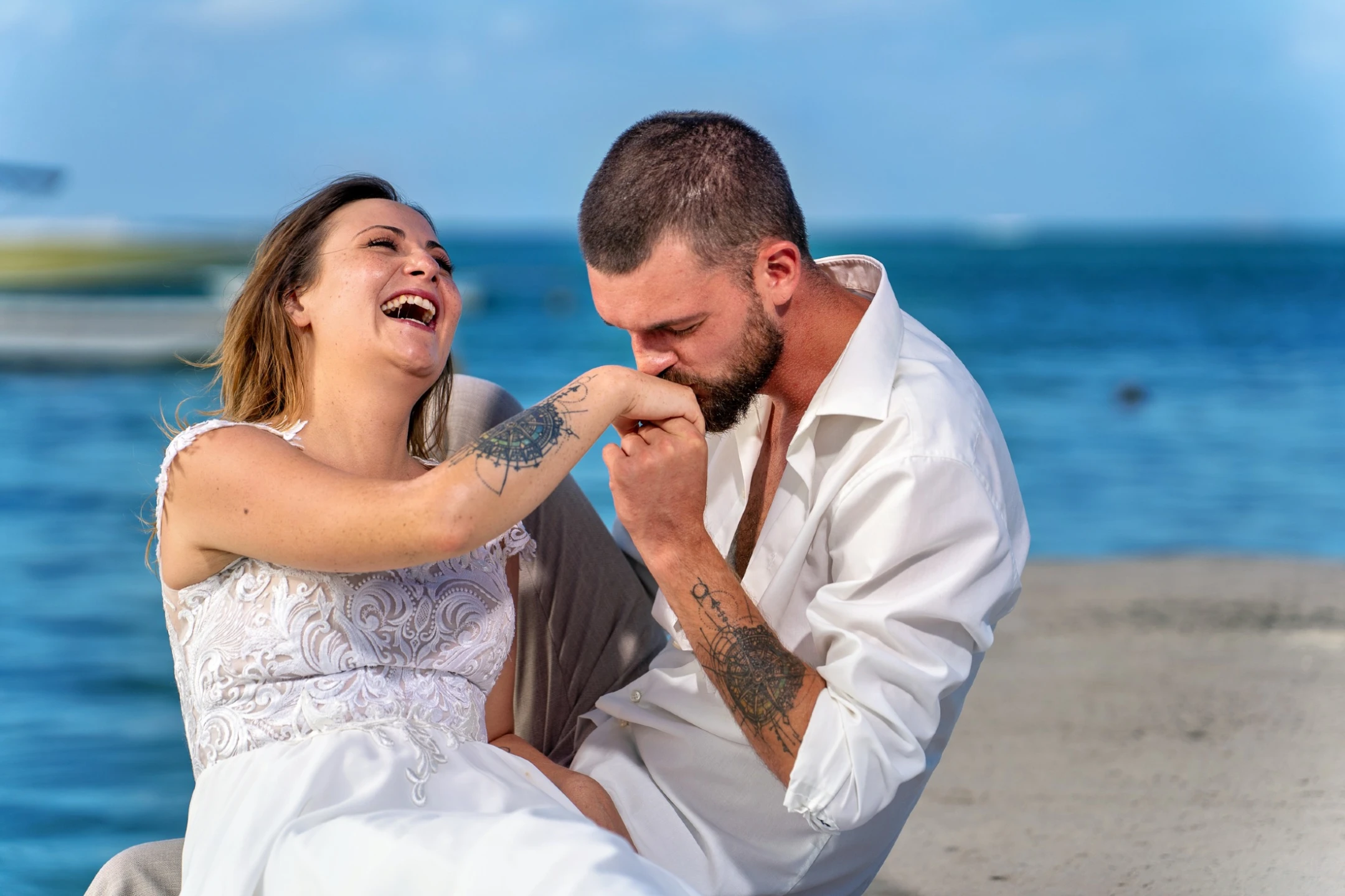 Für euer Fotoshooting nehme ich mir ausgiebig Zeit, meist 4 Stunden oder länger. Mir ist es wichtig, euch kennenzulernen und zu verstehen, wie ihr tickt, denn an diesem besonderen Tag komme ich euch mit der Kamera sehr nahe. Ich werde eure emotionalsten Momente einfangen – sei es das Lachen oder die Freudentränen, der Schuh, der im Sand steckenbleibt, oder das Strahlen, wenn die Champagnerflasche mit dem Säbel geöffnet wird.